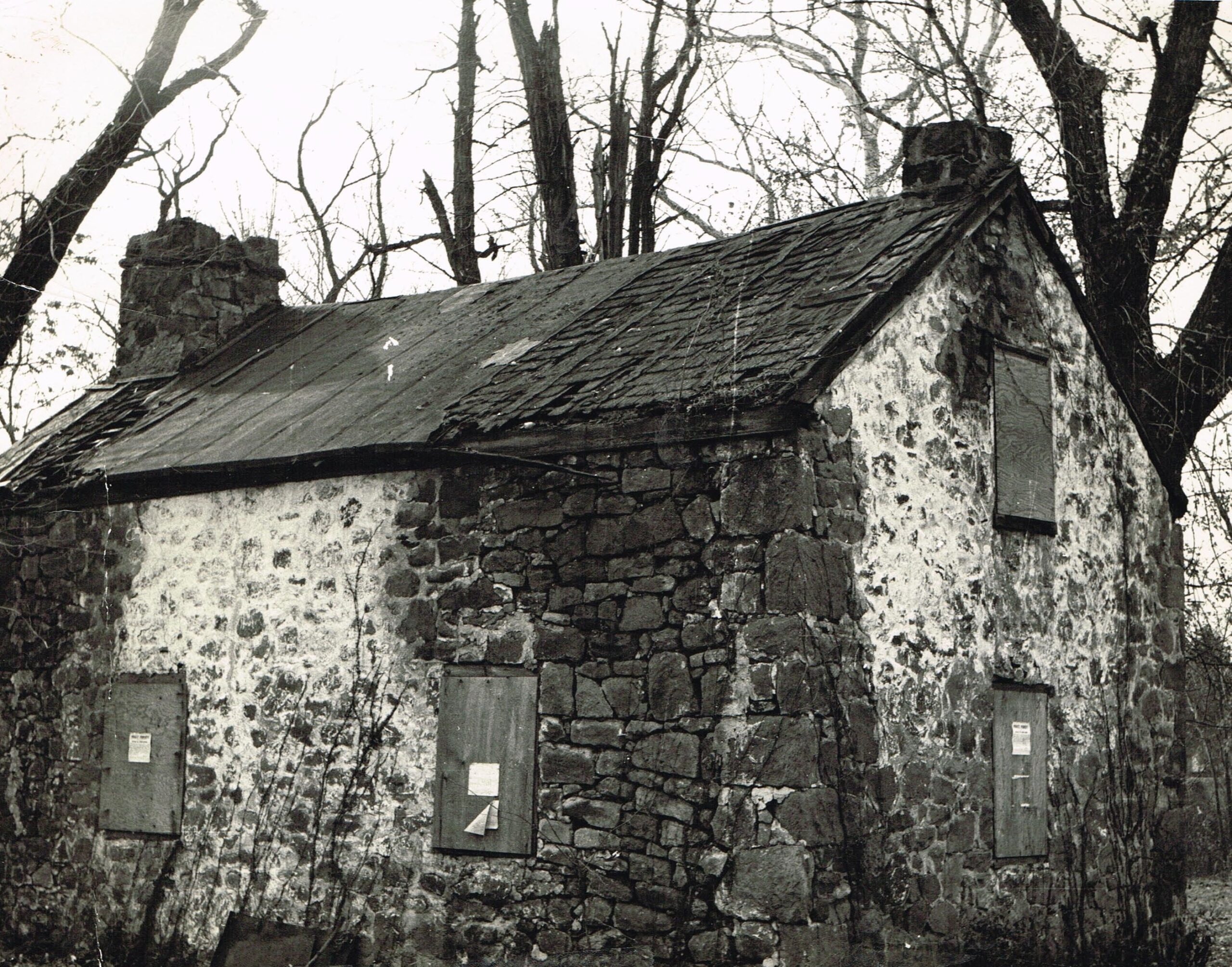 chimney set on the gable ridge, as it was positioned in the 1930s photo seen here.